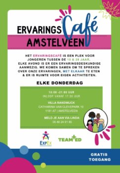 Het ervaringscafé is een plek voor jongeren tussen de 18 en 28 jaar. Elke avond is er een ervaringsdeskundige aanwezig. We komen samen om te...