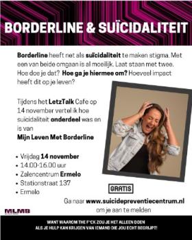 Borderline heeft net als suïcidaliteit te maken met stigma. Met één van beide omgaan is al moeilijk. Laat staan met twee. Hoe doe je dat? Hoe ga je...